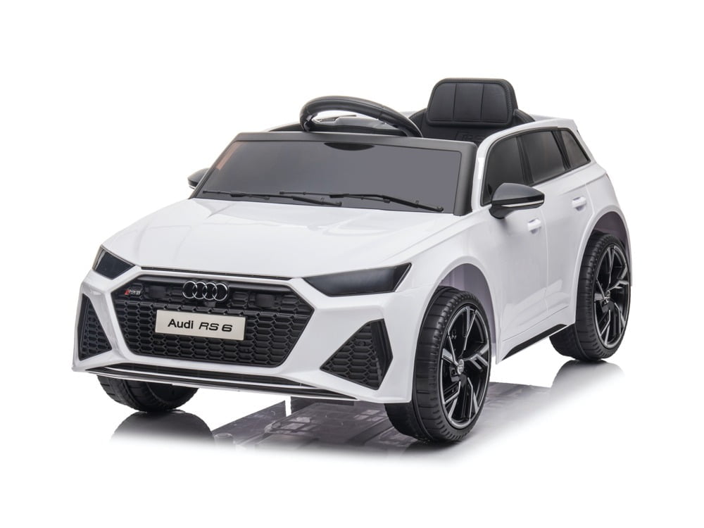 Audi RS6 12v wit afstandsbediening / Leder / Rubberband / Bluetooth