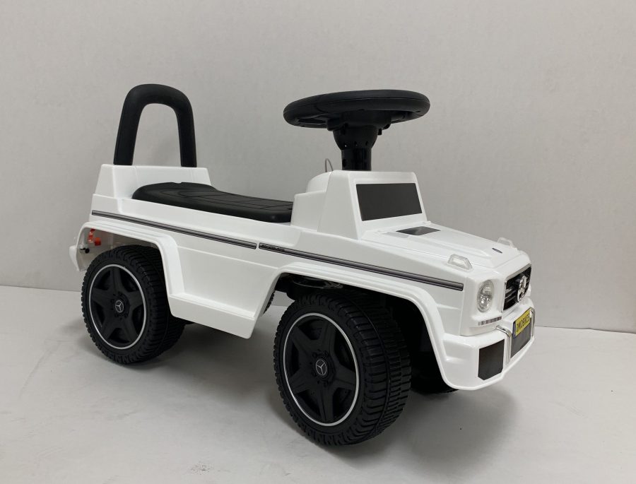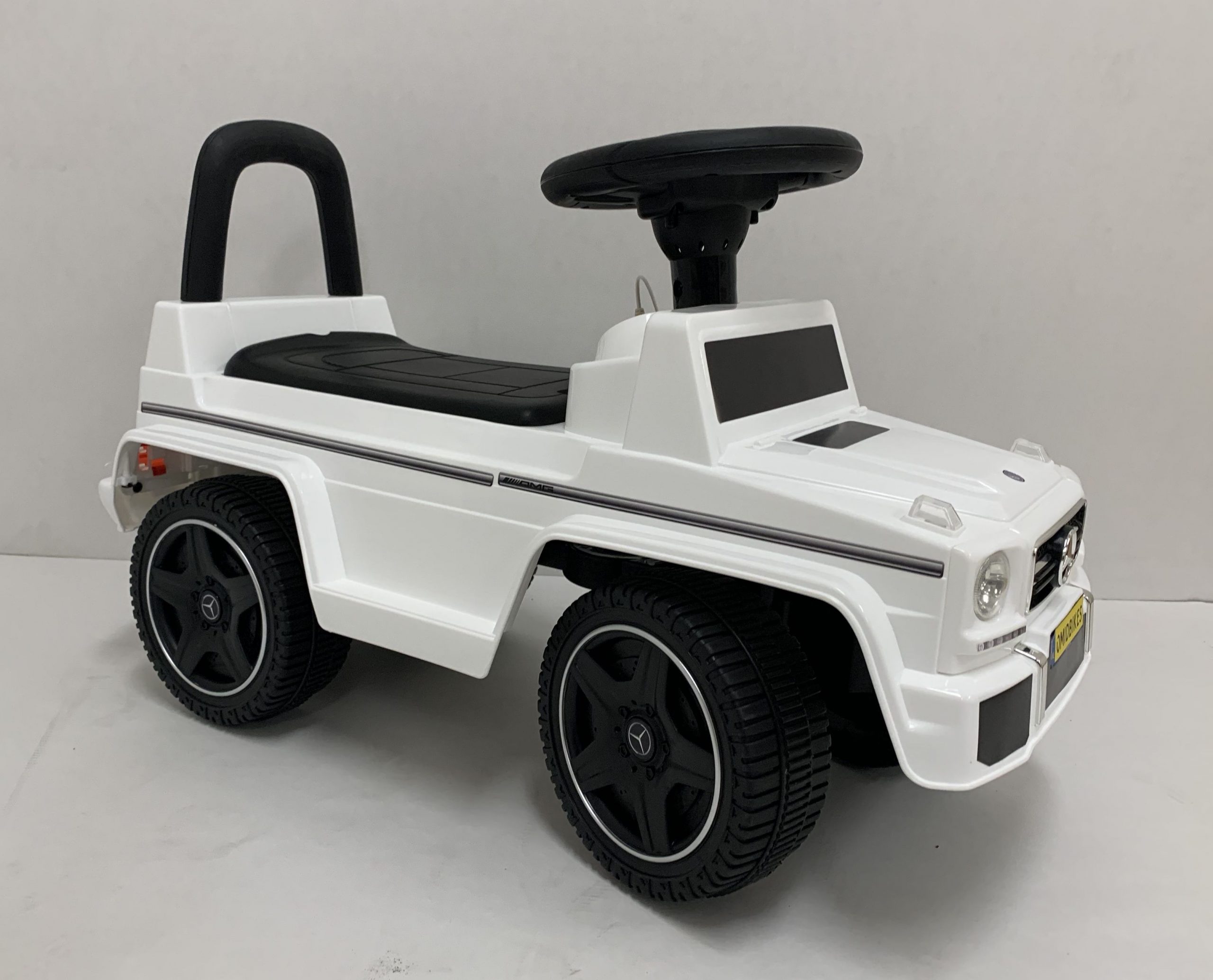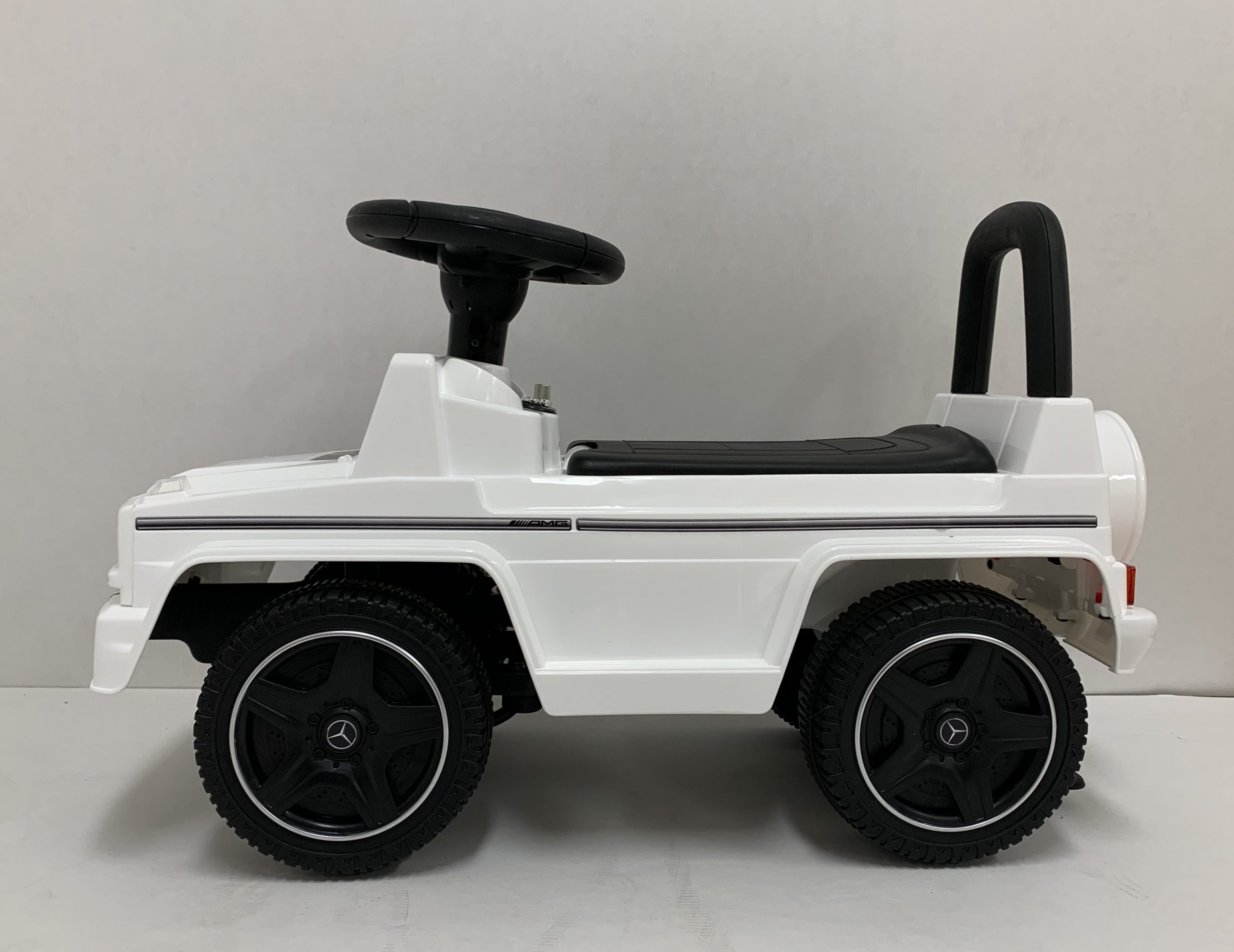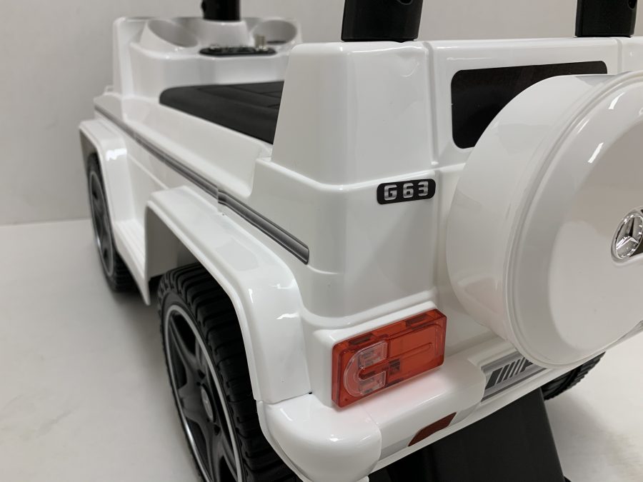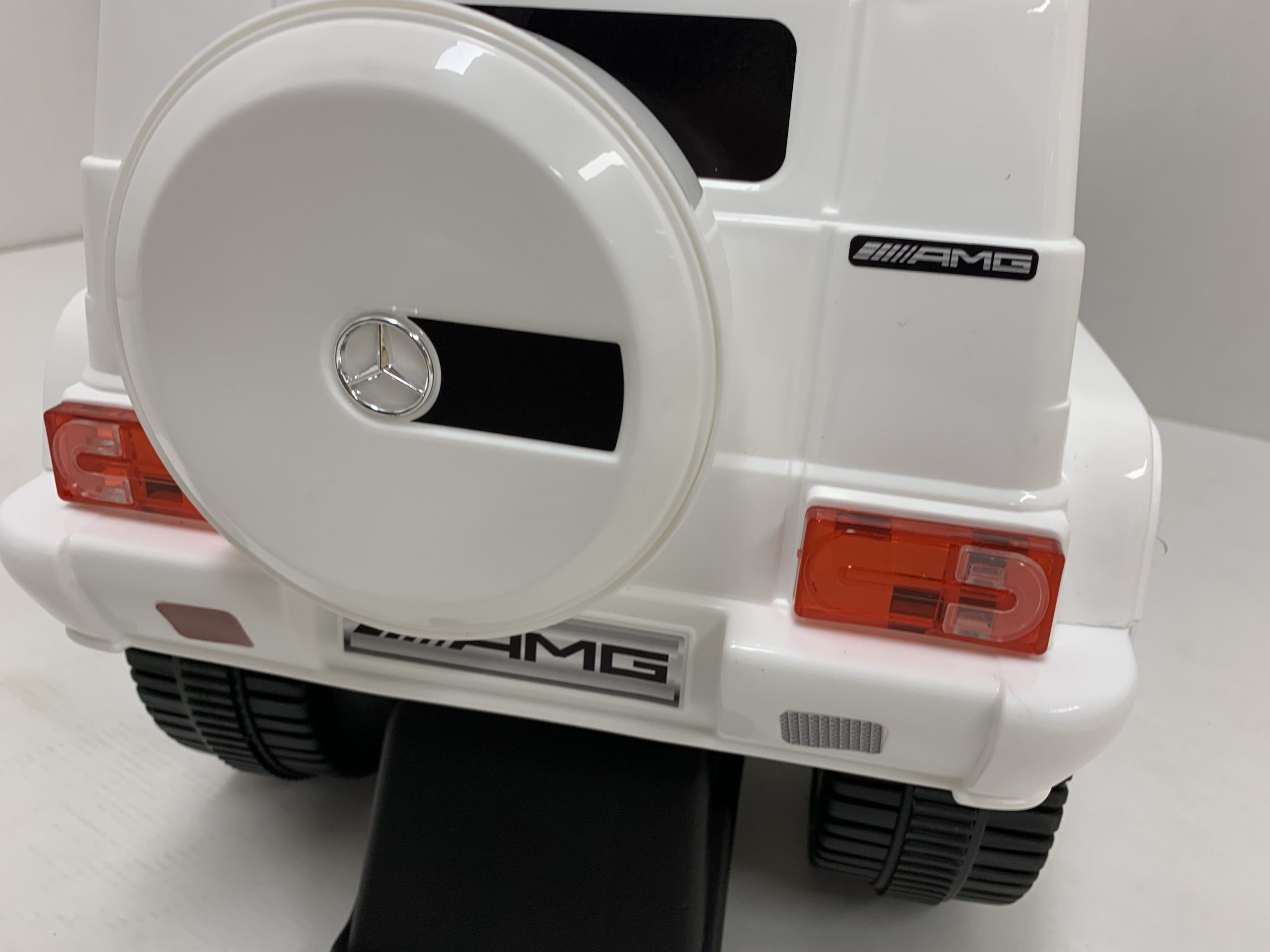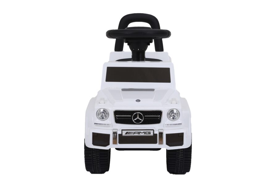 Deze luxe Mercedes G63 AMG loopauto is voorzien van een AUX / MP3 input en boxen om muziek rechtstreeks vanaf je telefoon en MP3 speler af te spellen!
