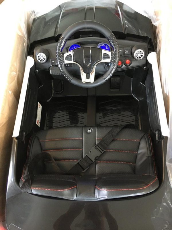 op kinderauto’s te vinden zijn. Dus geheel bij de tijd met zelfs lederen stoel , FM radio ,BT , usb port en de softstart 2.4ghz afstandsbediening.