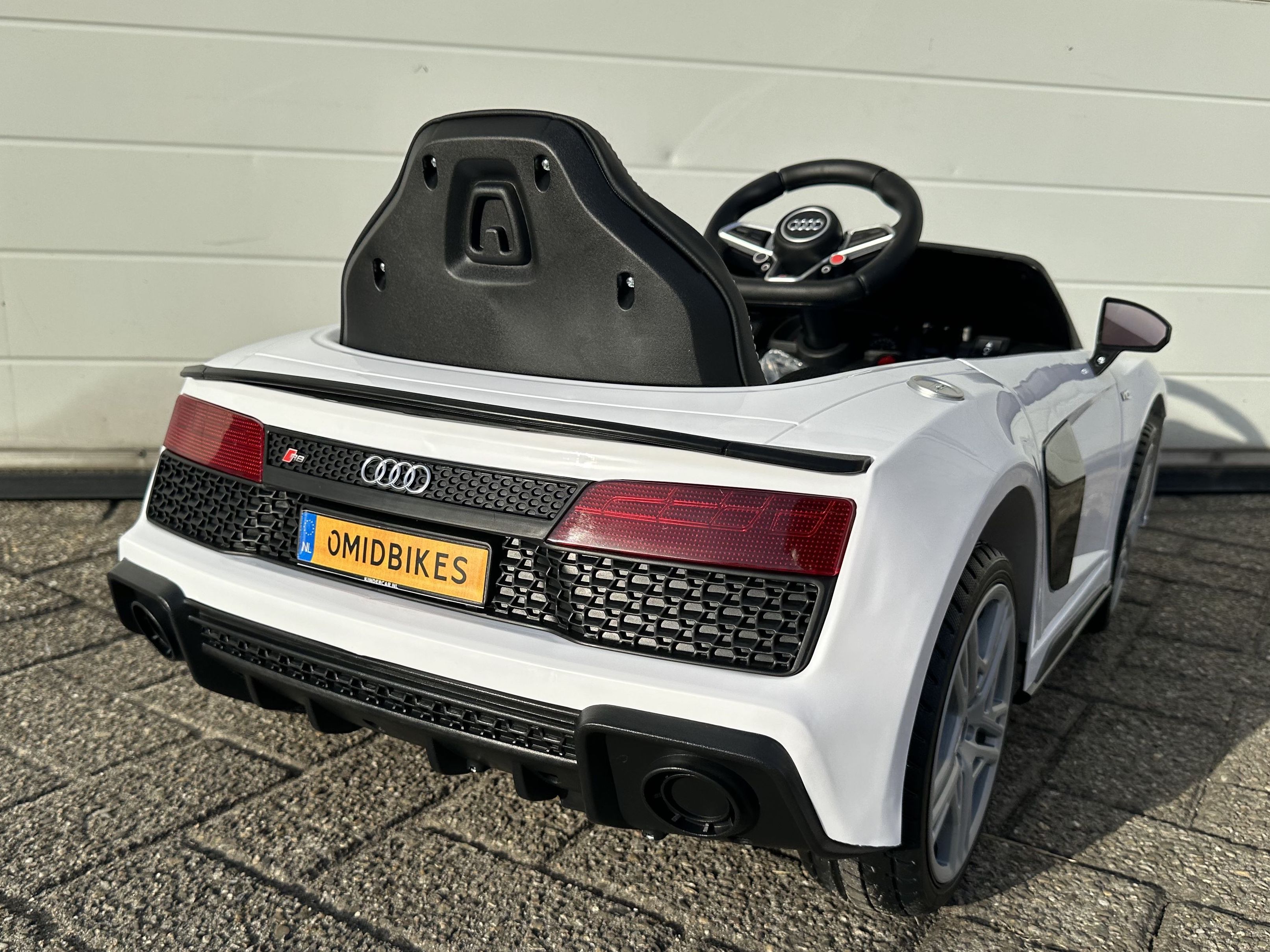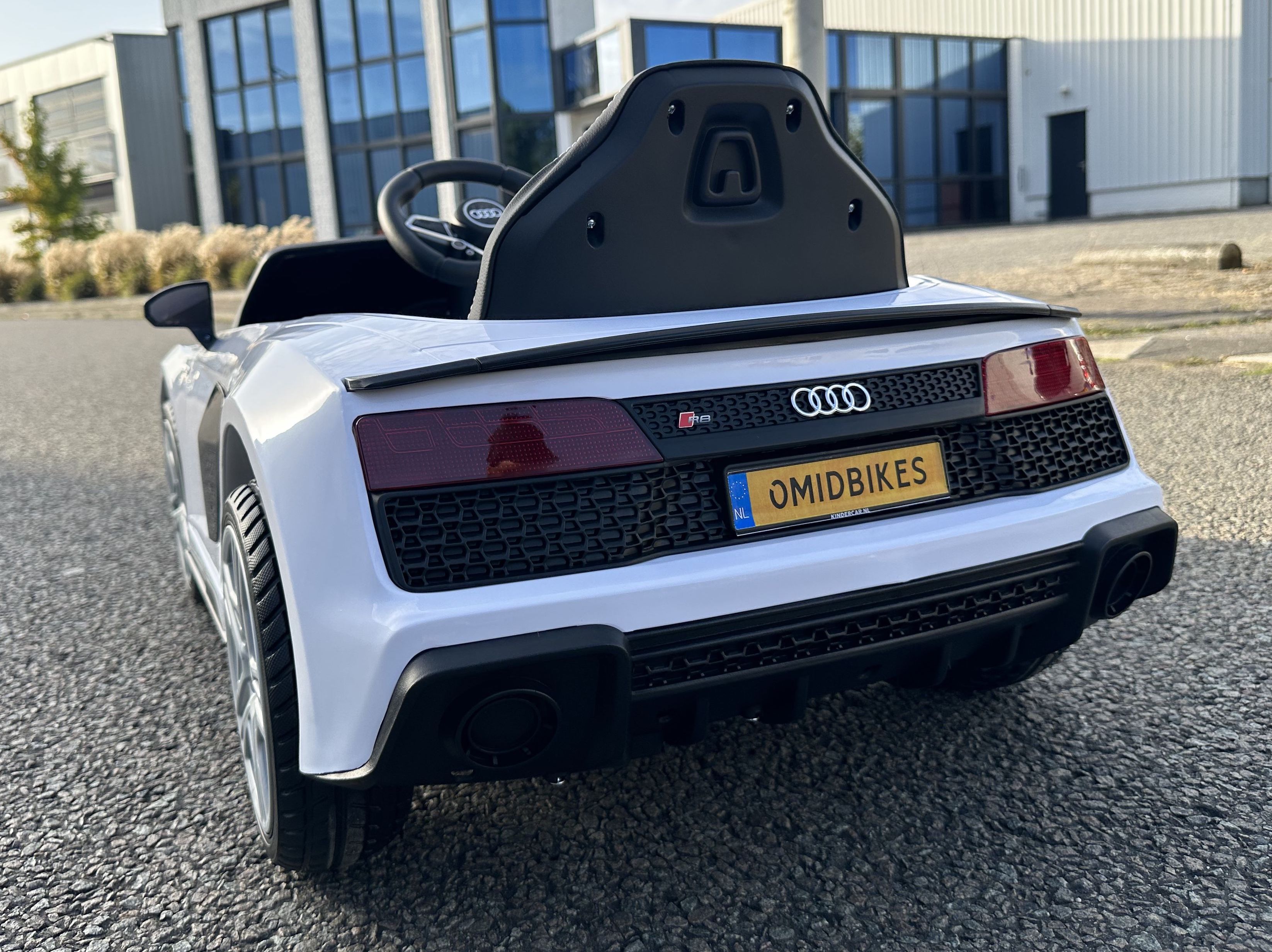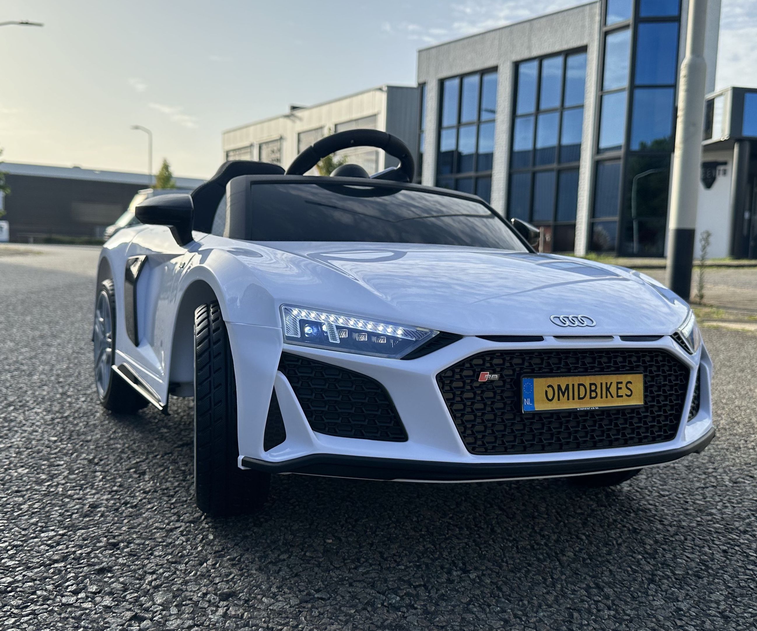 Audi R8 12v wit – lederen zit- EVA wielen – Afstandsbediening – Bluetooth – USB – MP3