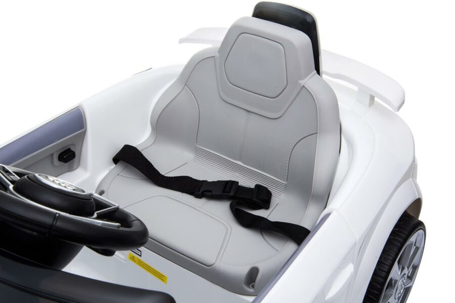 De kinderaccuauto beschikt over gordels zodat uw kind veilig vastgezet kan worden en heeft met “leer” beklede stoelen.