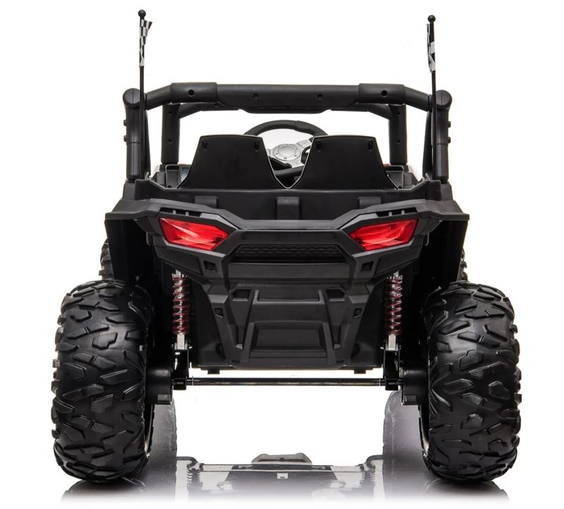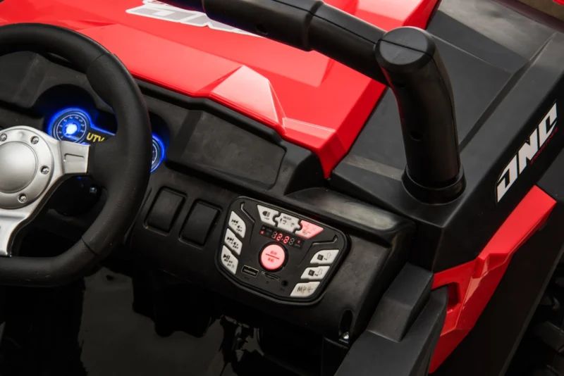 Deze buggy heeft niet alleen de looks, maar zeker ook de laatste technische snufjes. Omdat in deze quad door 4 motoren aangedreven is heeft die echte spierballen! Uiteraard voor de kleine ontdekkers zit er een softstart 2.4ghz afstandsbediening bij waar mee de gehele buggy door de ouders bestuurd kan worden. Als extra’s oa, metalen swingarm met metalen vering, BlueTooth, geheel tiptoets multimediascherm.