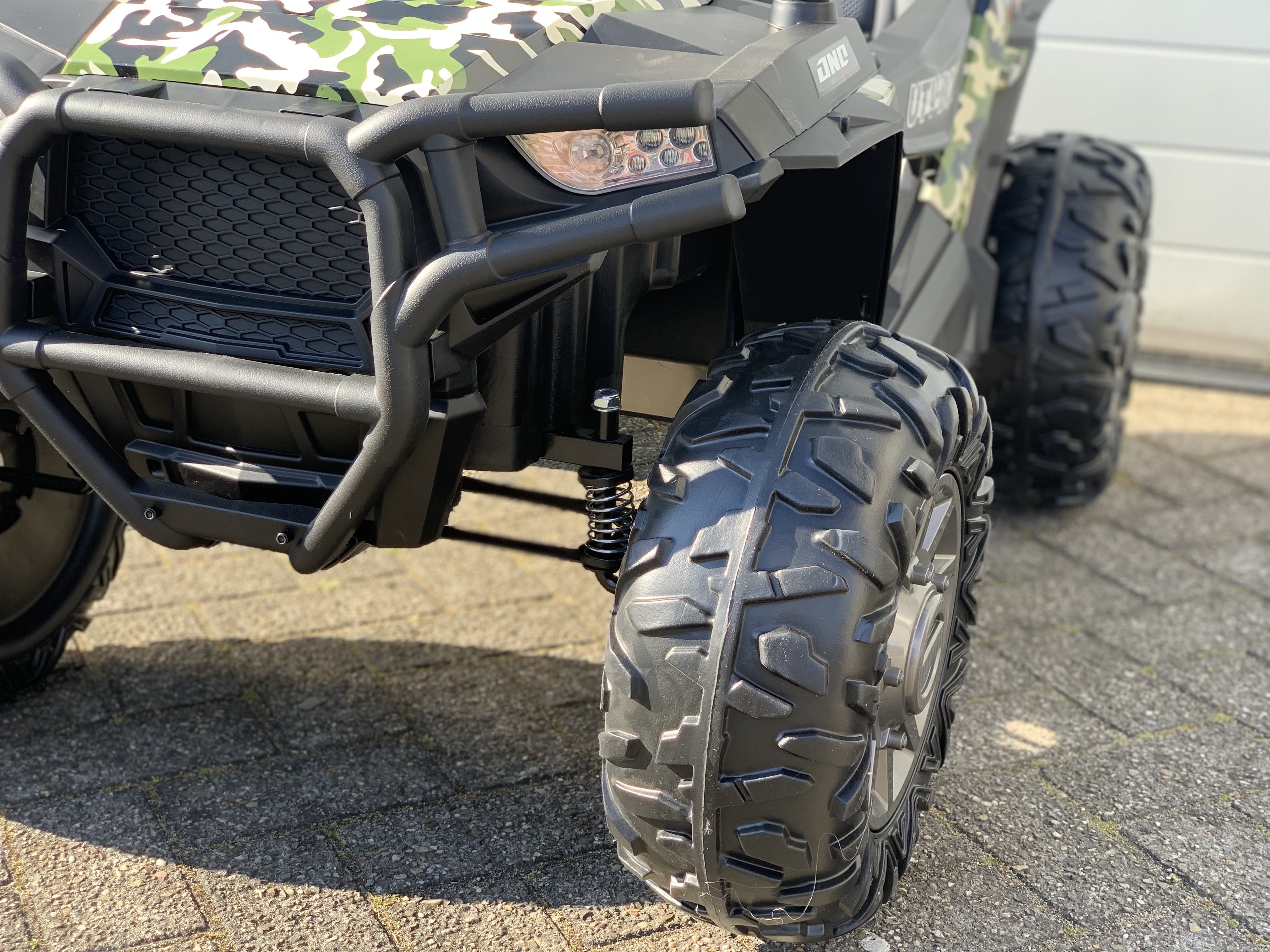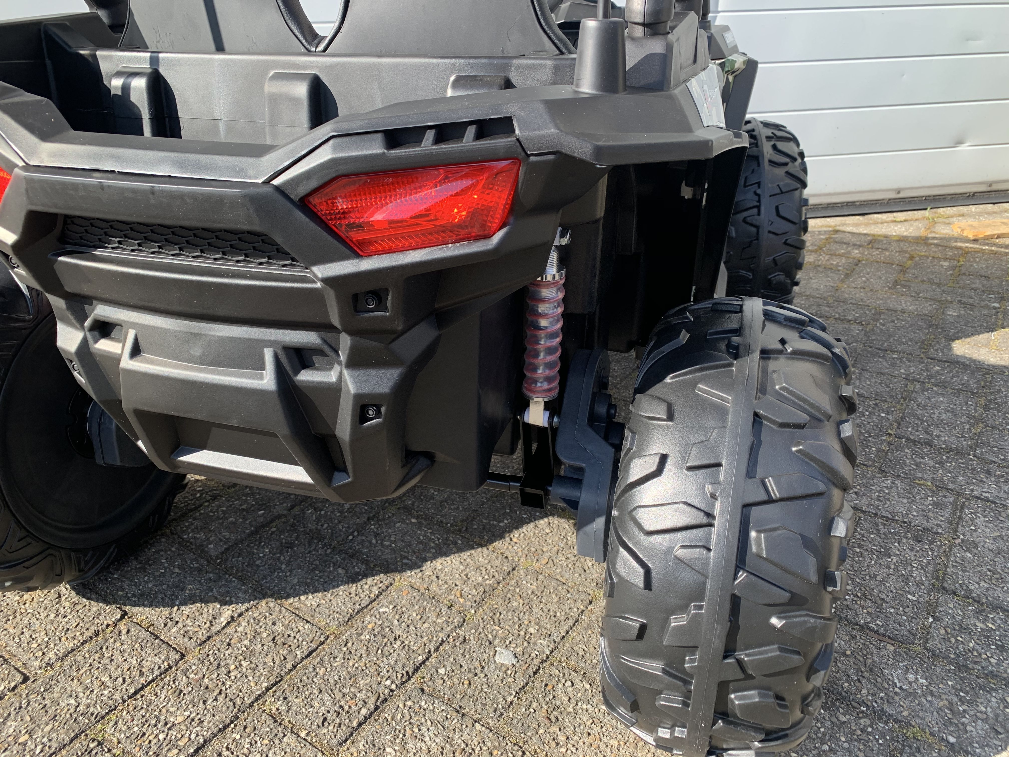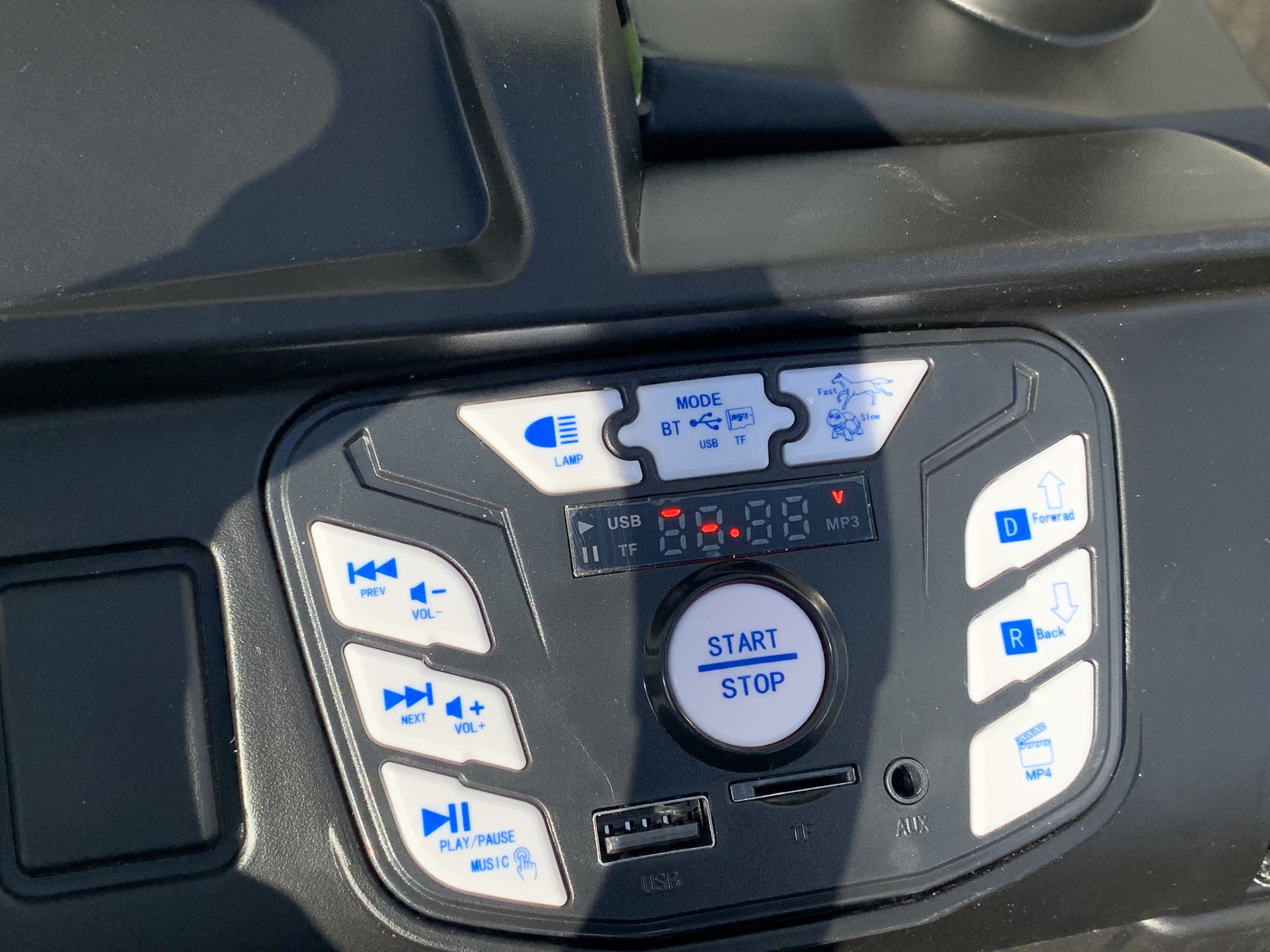 Druk op de startknop en de Buggy UTV BOM kinderauto 24V zal starten en brullende startgeluiden laten horen. Daarnaast gaat alle verlichting direct aan.