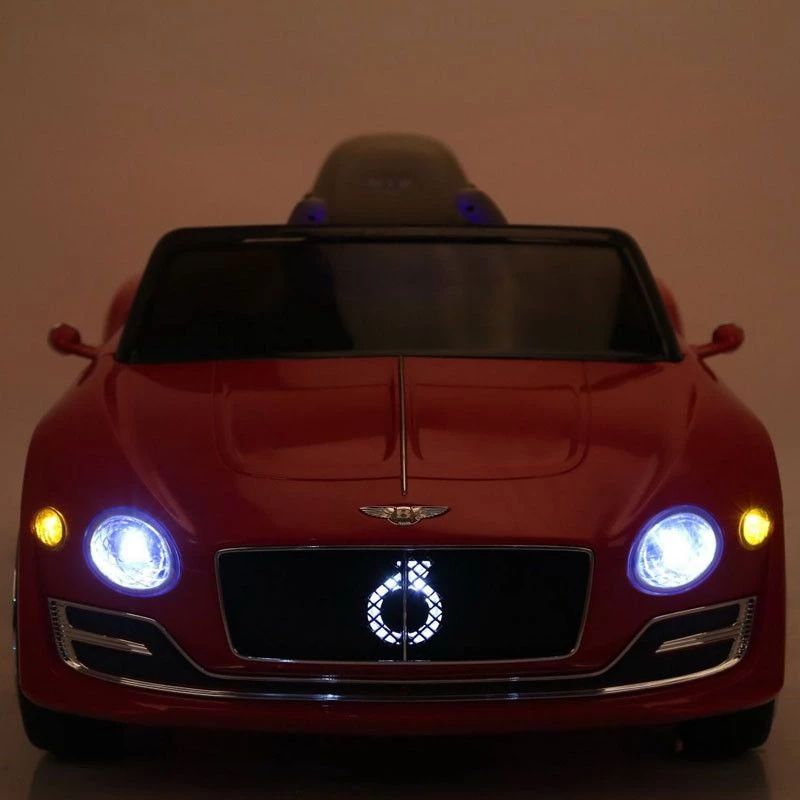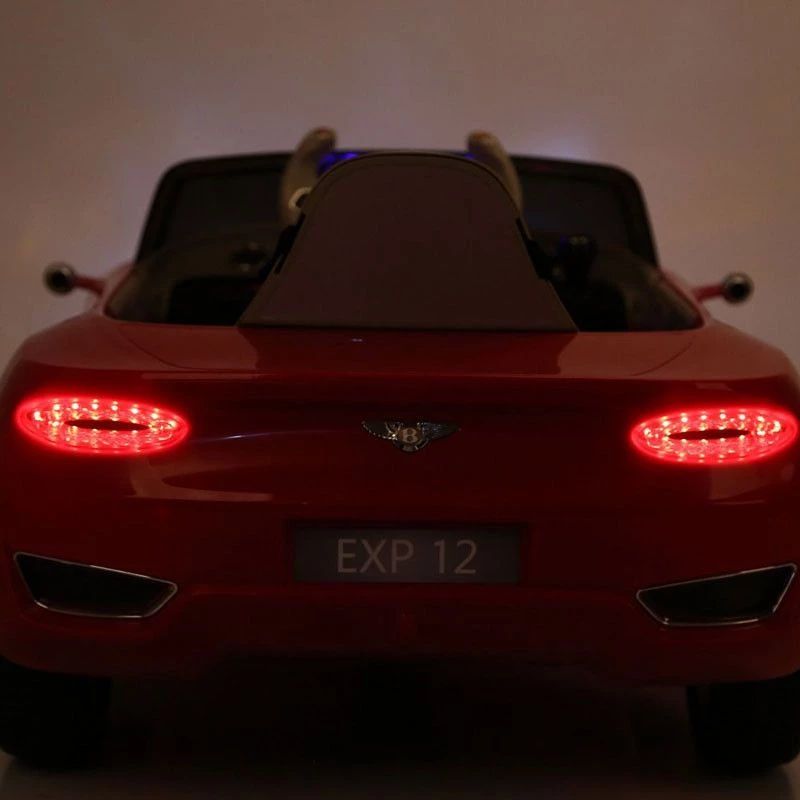 De luxe uitvoering van deze accu auto Bentley EXP 12 bestaat uit wielen met rubberen banden (EVA), geveerde achteras, leren stoel (creme zoals op foto 2) + 3-punstgordel, startknop, gespoten laklaag, voor- en achterlichten, verlicht dashboard, MP3/TFT/USB aansluiting, toeter, muziekjes en volumeregeling.