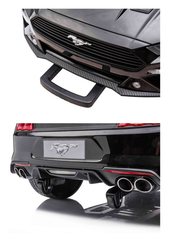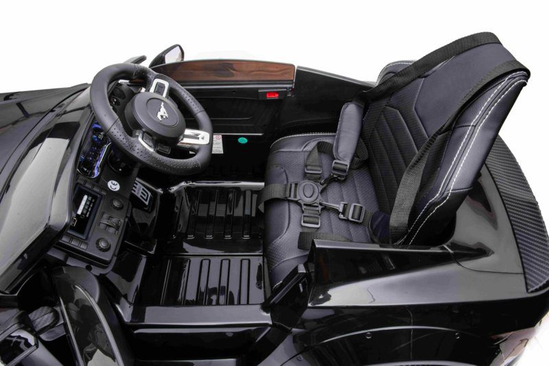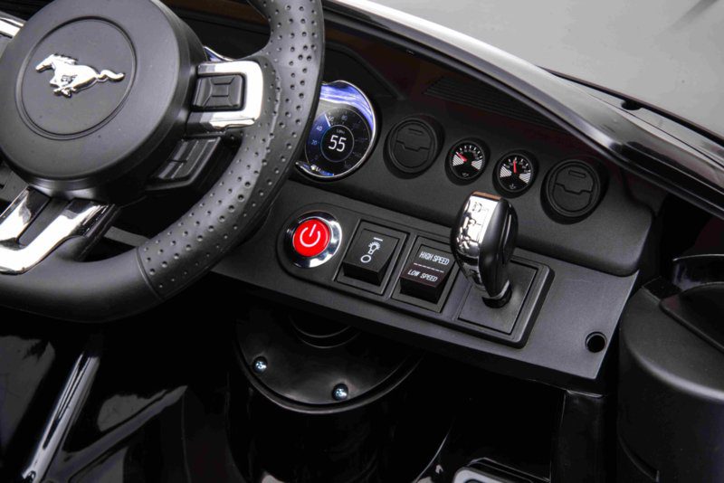 Deze Ford Mustang is uitgerust met een lederen zitting, (EVA) rubberen banden. De kinderauto kan voor en achteruit rijden door een schakelpookje te bedienen. Het dashboard is voorzien van een heuse MP4 Touch Screen scherm, Mp3, USB een digitale voltmeter, verlichting en diverse muziek in het stuur.