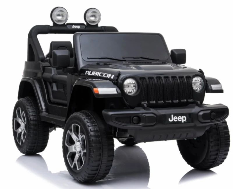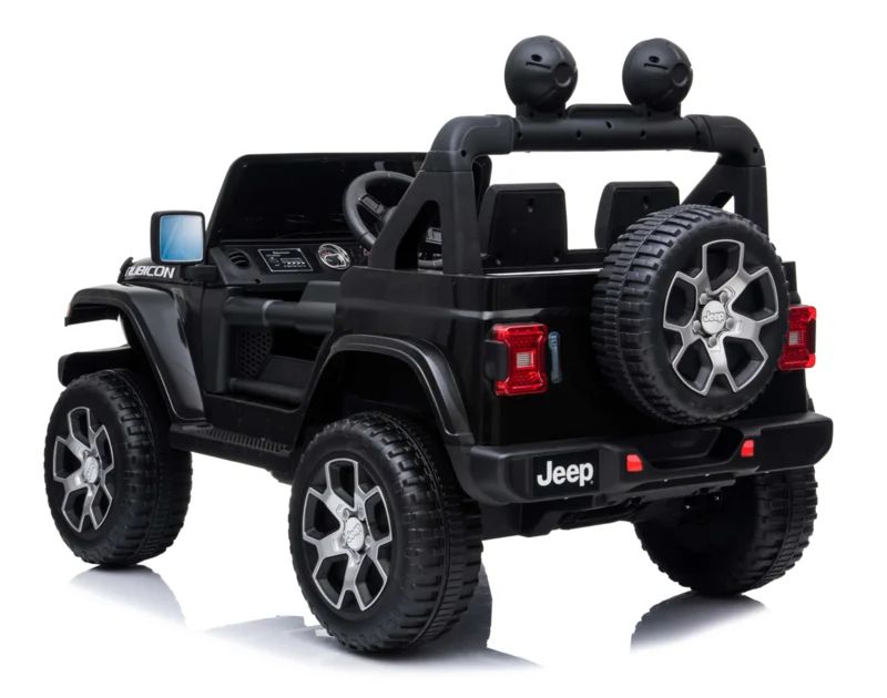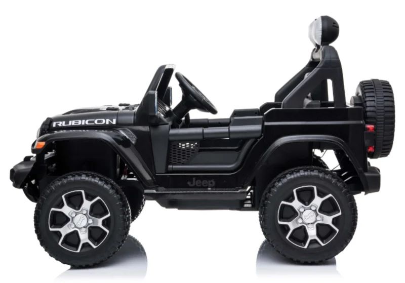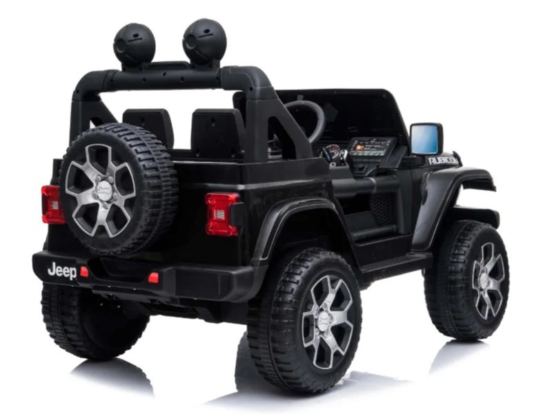 Jeep Wrangler Rubicon trail approved! Stoerder als deze in licentie geproduceerde jeep kan het niet meer worden. Deze jeep is gemaakt voor de echte 4×4 bikkels. Ook technisch is deze jeep geheel bij de tijd met oa Mp4 TV scherm, FM radio, USB, Blue Tooth, softstart afstandsbediening , openslaande deuren, en zwart leder look stoel