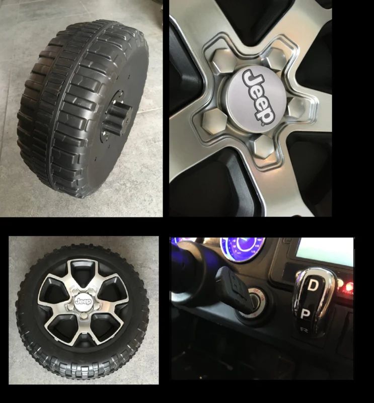 Ook technisch is deze jeep geheel bij de tijd met oa Mp4 TV scherm, FM radio, USB, Blue Tooth, softstart afstandsbediening , openslaande deuren, en zwart leder look stoel