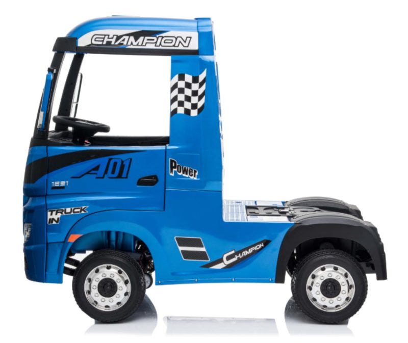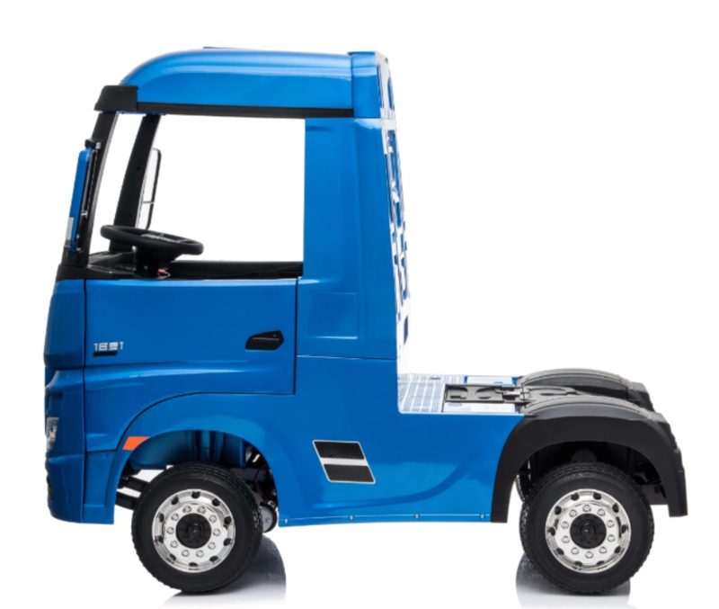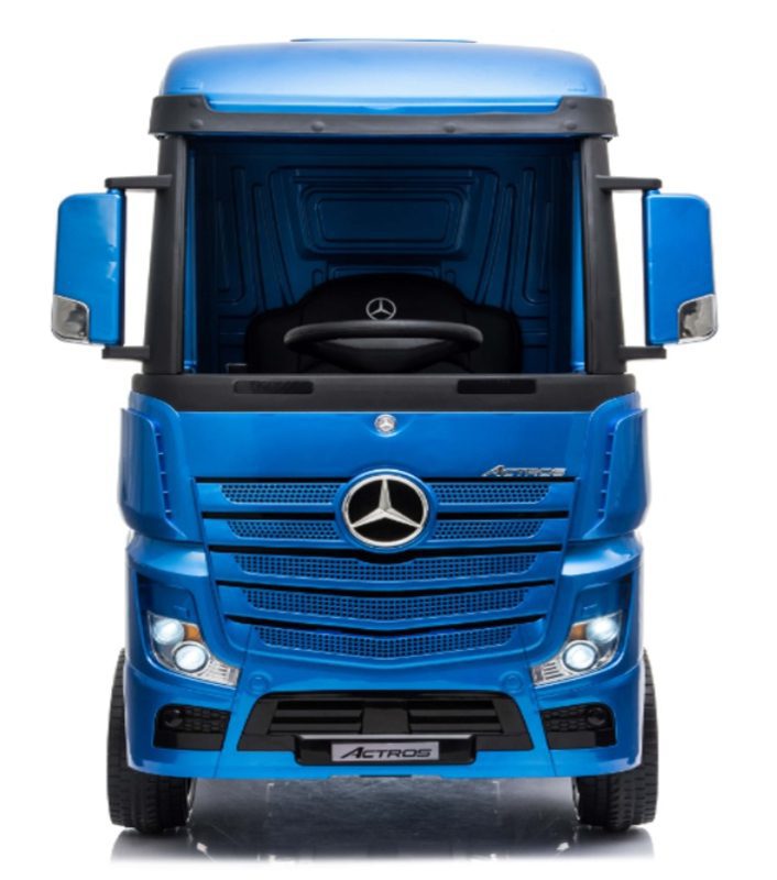 Mercedes ACTROS Heavy Truck met 4 wiel aandrijving en dubbele accu’s Deze stoere truck is geschikt voor jongens en meisjes van 1-6 jaar. Doordat deze truck door Mercedes-Benz is gelicenceerd kloppen alle details exact. Ook de kwaliteit en specificaties zijn geheel in lijn met de hoge Mercedes standaarden. Tevens is dit de FULL options versie. Dus uitgerust met alle opties die leverbaar zijn, oa, FM radio openslaande deuren, leder look stoel, extra zware dubbele accu’s, gordel, softstart, vering rondom en vierwielaandrijving. Met deze vette coole truck is uw kind KING of the Road!