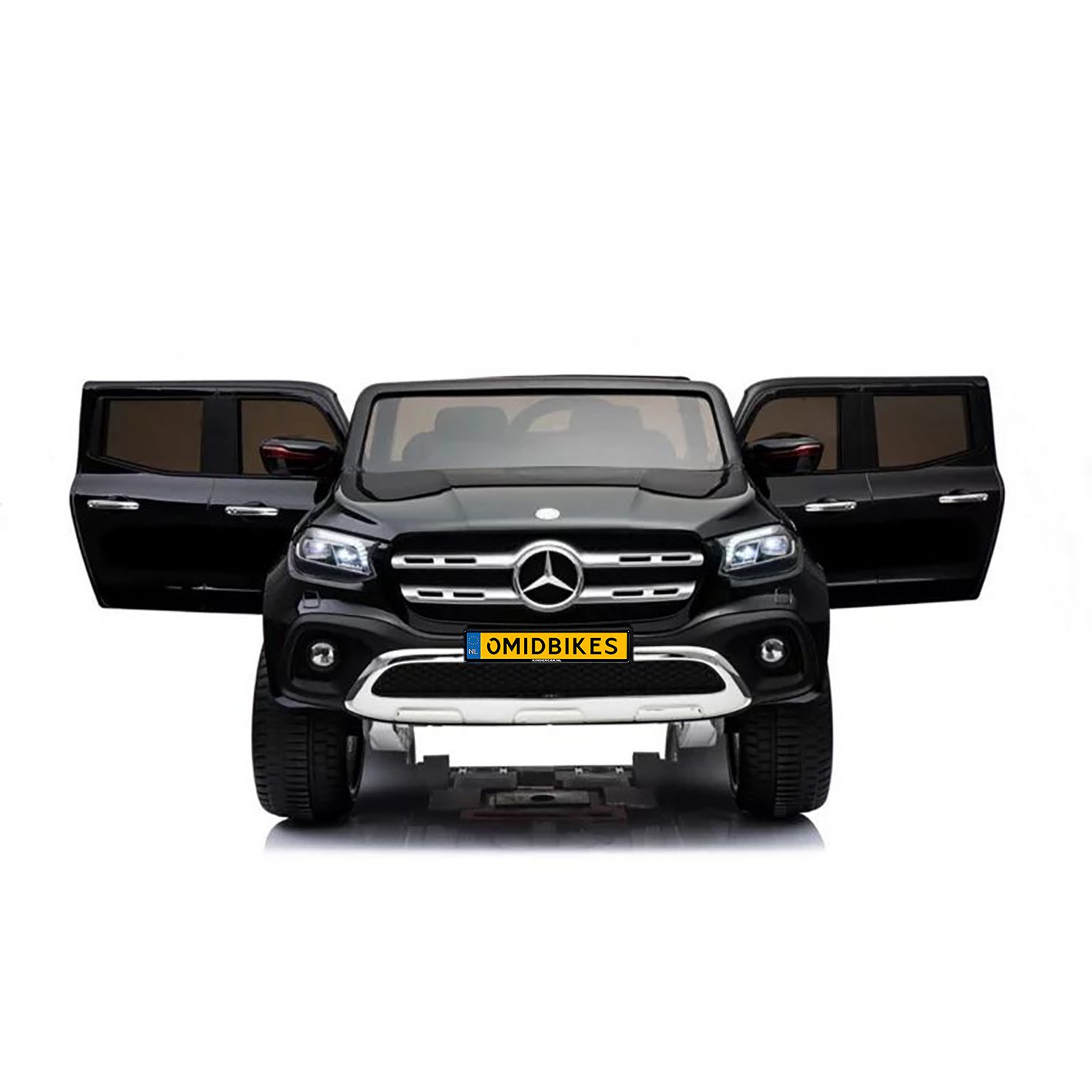 De Mercedes-Benz X-class is de grootste elektrische kinderauto verkrijgbaar op dit moment. De Mercedes is voorzien van alle extra opties zoals BlueTooth, FM radio, MP4 scherm met touchscreen, openslaande deuren, leer look, vering en nog veel meer! Deze auto is voorzien van een metallic laag.