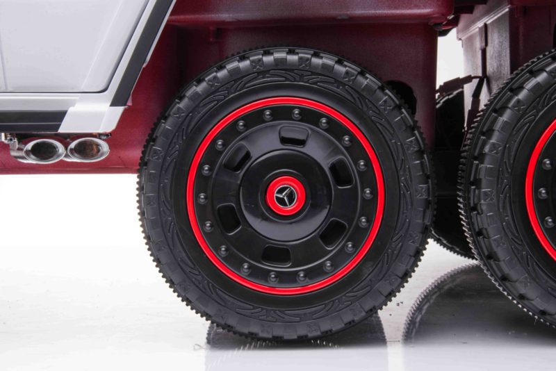 Indrukwekkend Design: De Mercedes-Benz G63 6×6 kinderauto is niet alleen een speelgoedauto; het is een kunstwerk op wielen. Met zijn two tone lederen look zitje en realistische details, straalt deze auto stijl en klasse uit.